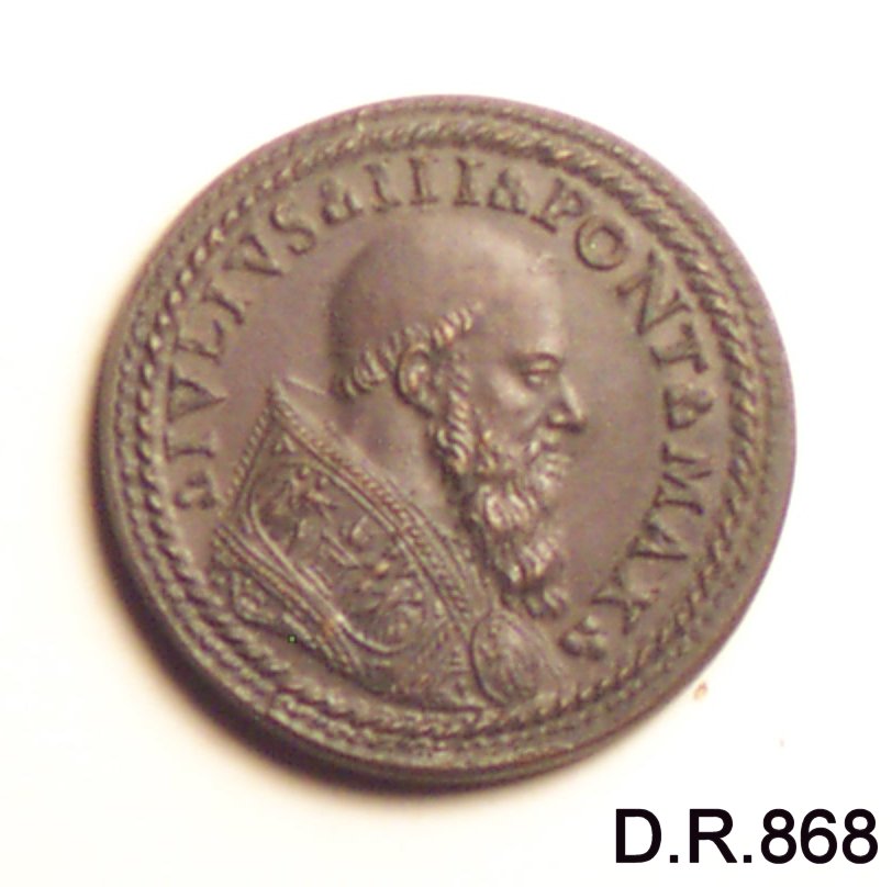 Dritto: Busto di Giulio III volto a destra, con piviale, capo nudo e barba. Rovescio: La porta Santa