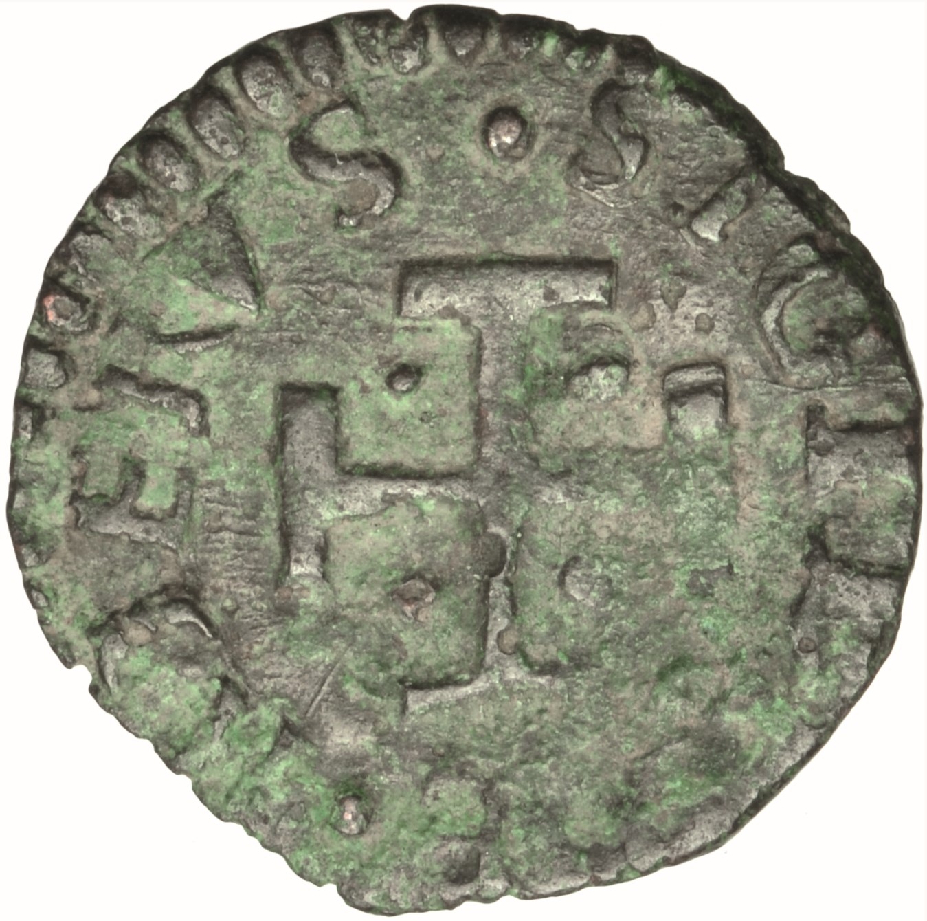 Dritto: Testa radiata del re, volta a d., con drappeggio sulla spalla sinistra; sotto, ∙ ❈ ∙. Campo monetale delimitato da filetto perlinato. Rovescio: Croce di Gerusalemme cantonata da globetti. Campo monetale delimitato da filetto perlinato