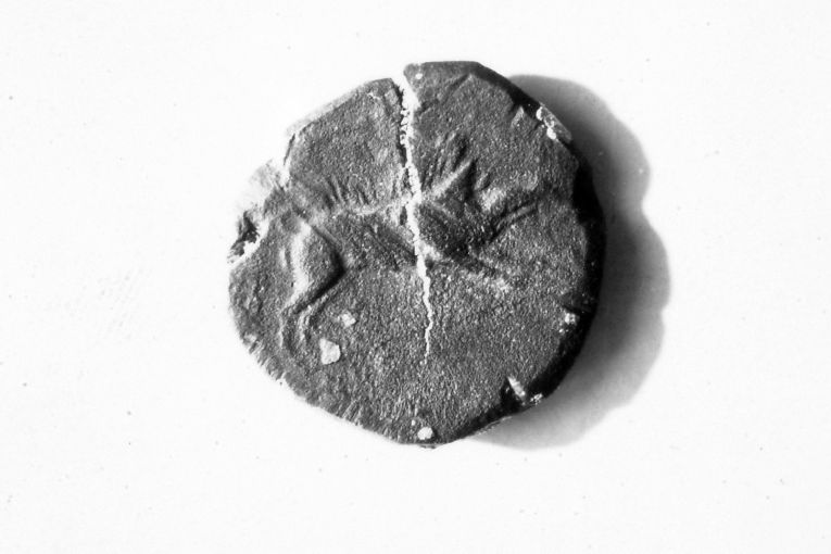 Testa di Zeus con corona d'alloro a sinistra (recto)/ Cinghiale calidonio di corsa a destra, punta di lancia (verso)
