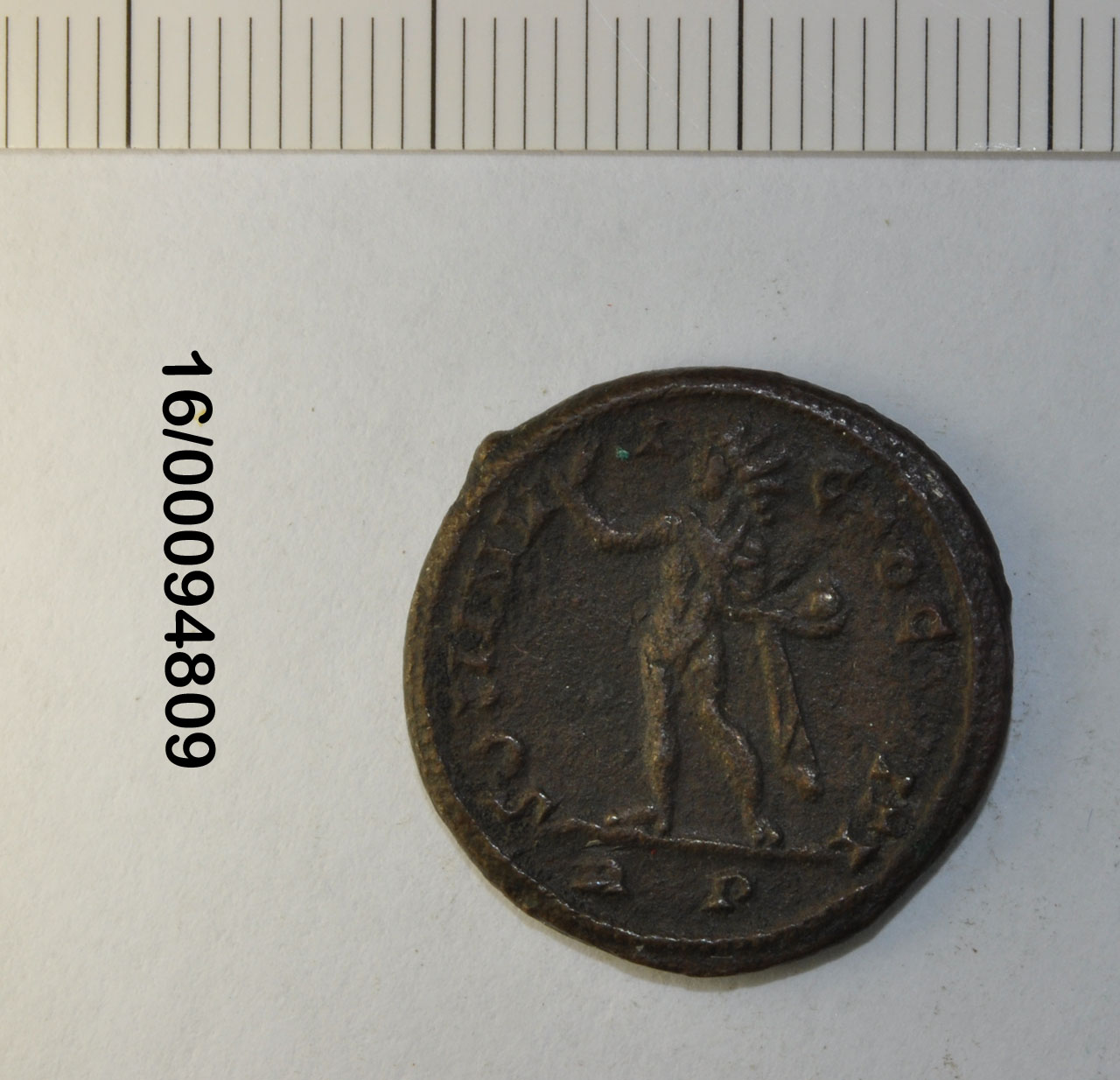 Dritto: Busto drappeggiato e laureato di Costantino a d. Rovescio: Sole stante a s. con la mano d. levata, con la s. regge un globo, sulla spalla s. clamide attorcigliato sul braccio s