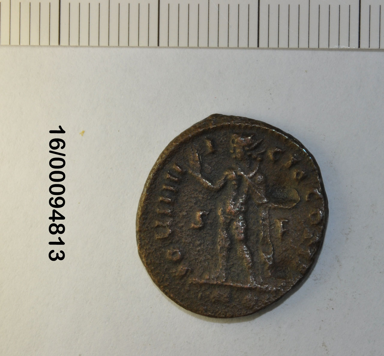 Dritto: Busto drappeggiato e laureato di Costantino a d. Rovescio: Sole stante a s. con la mano d. levata, con la s. regge un globo, sulla spalla s. clamide attorcigliato sul braccio s