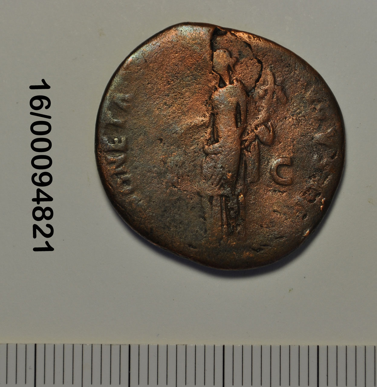 Dritto: Testa laureata di Domiziano a d. Rovescio: Moneta stante a s. con nella mano s. cornucopia