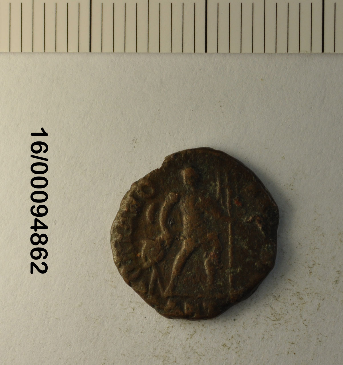Dritto: Testa diademata a doppia file di perle di Valentiniano a d. Rovescio: L'imperatore incedente a d. con testa rivolta a s. che trascina con la mano d. un prigioniero e con la s. regge uno scettro