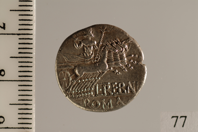 Dritto: Testa Galeata di Roma a d. Rovescio: Giove su quadriga a d. con fulmine nella mano d., redini e scettro nella s