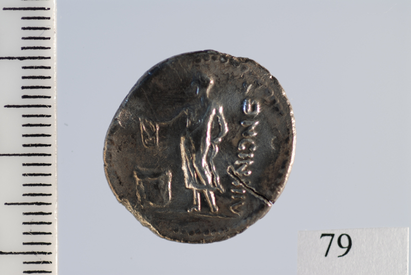 Dritto: Testa velata e diademata di Vesta a s., a d. kylix. Rovescio: Votante a s. in atto di deporre una tavoletta recante il segno V entro una cista