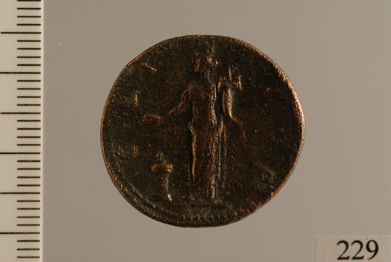 Dritto: Busto laureato e barbato, corazzato a d. Rovescio: Figura femminile panneggiata con corona turrita stante a s. con patera nella mano d. protesa su ara accesa e cornucopia nella s