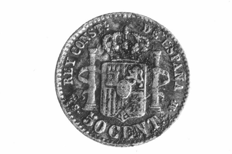 Ritratto di Alfonso XII, re di Spagna; arme regale Borbone di Spagna,