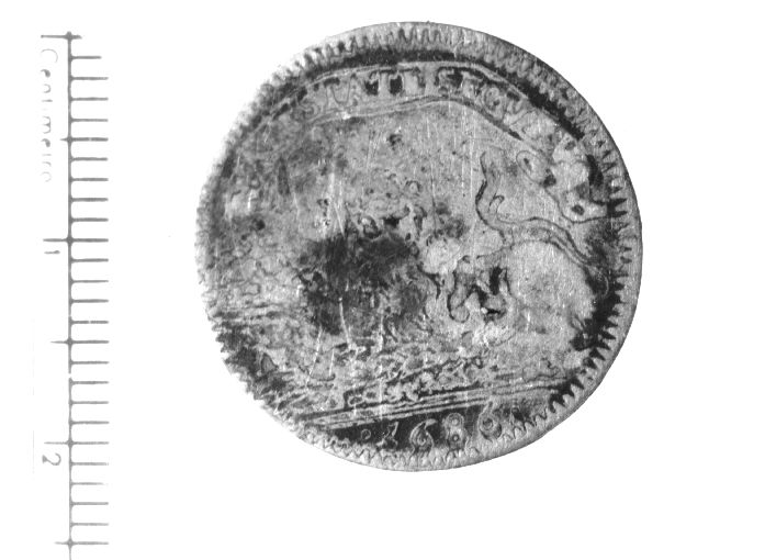 Busto a testa nuda volto a destra; figura non identificabile con nastro s volazzante,