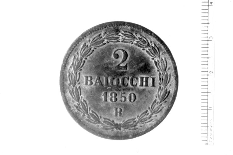 Arme papale di Pio IX (recto)Corona d'alloro (verso),