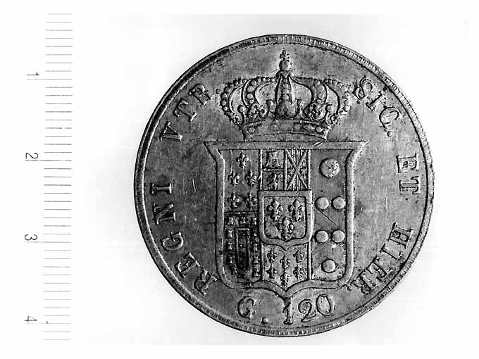 R/Testa nuda di Ferdinando II a destra, barbato; sotto,1856; intorno, leggenda; bordo perlinato.V/Stemma coronato; sotto, G.120; intorno, leggenda; bordoperlinato