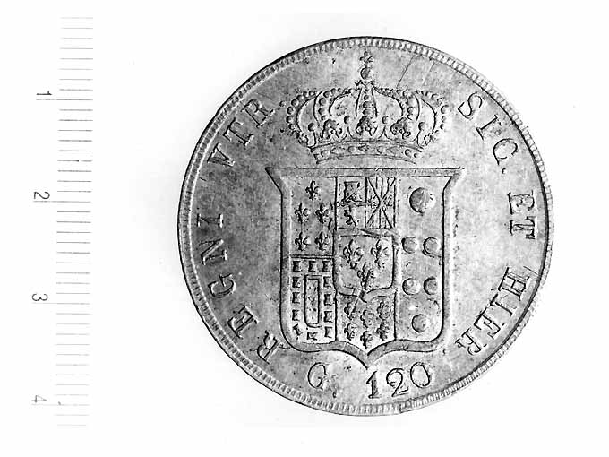 R/Testa nuda di Ferdinando II a destra, barbato; sotto,1856; intorno, leggenda; bordo perlinato.V/Stemma coronato; sotto, G.120; intorno, leggenda; bordoperlinato,