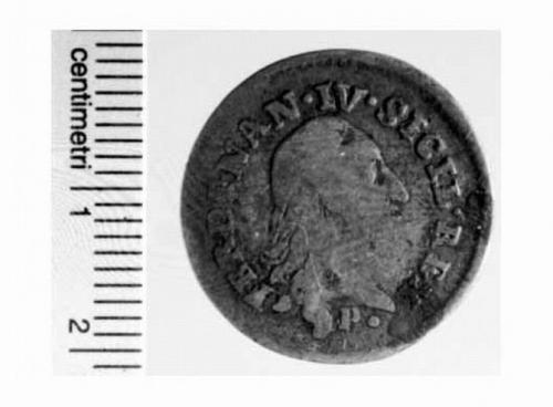 Busto del sovrano girato verso destra; croce gigliata accantonata da ragg i