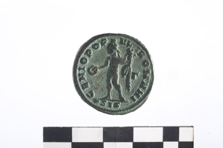 Dritto: Testa laureata di Massimiano Ercole, a d. Rovescio: Genius a s., con patera e cornucopia