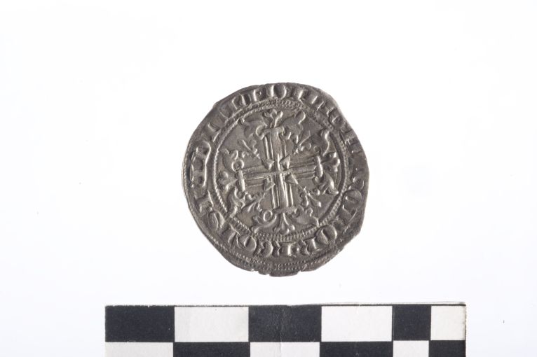 Dritto: Re coronato, con globo crucigero nella s. e scettro nella d., seduto di fronte, in trono ornato da protomi di leone, entro cerchio perlinato. Rovescio: Croce gigliata e filettata, accantonata da quattro fiordalisi, entro cerchio perlinato