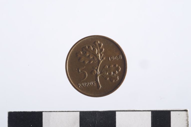Dritto: Ramo con foglie di quercia; nel campo a s.: valore; nel campo a d.: data. Rovescio: Mezza luna e stella (simbolo della Turchia) delimitato da legenda con foglia
