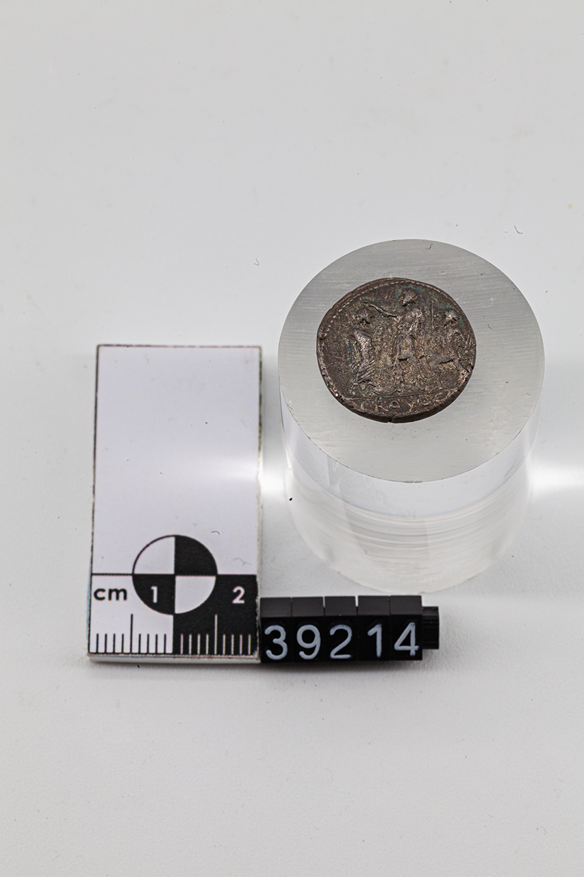 Dritto: Testa di Roma con elmo alato a d. Rovescio: Guerriero stante a s. seguito da littore con fasci, che tende il braccio a d. su un togato davanti a lui