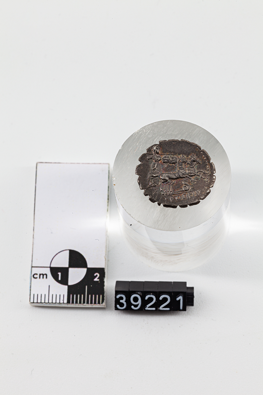 Dritto: Testa di Giunone Sospita con pelle caprina, a d. Rovescio: Giunone Sospita con pelle caprina, lancia e scudo, in biga al passo, a d.; sotto i cavalli, serpente