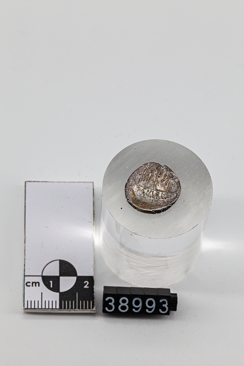 Dritto: Testa laureata di Giove a d. Rovescio: CN.LENT Vittoria stante a d. che incorona un trofeo