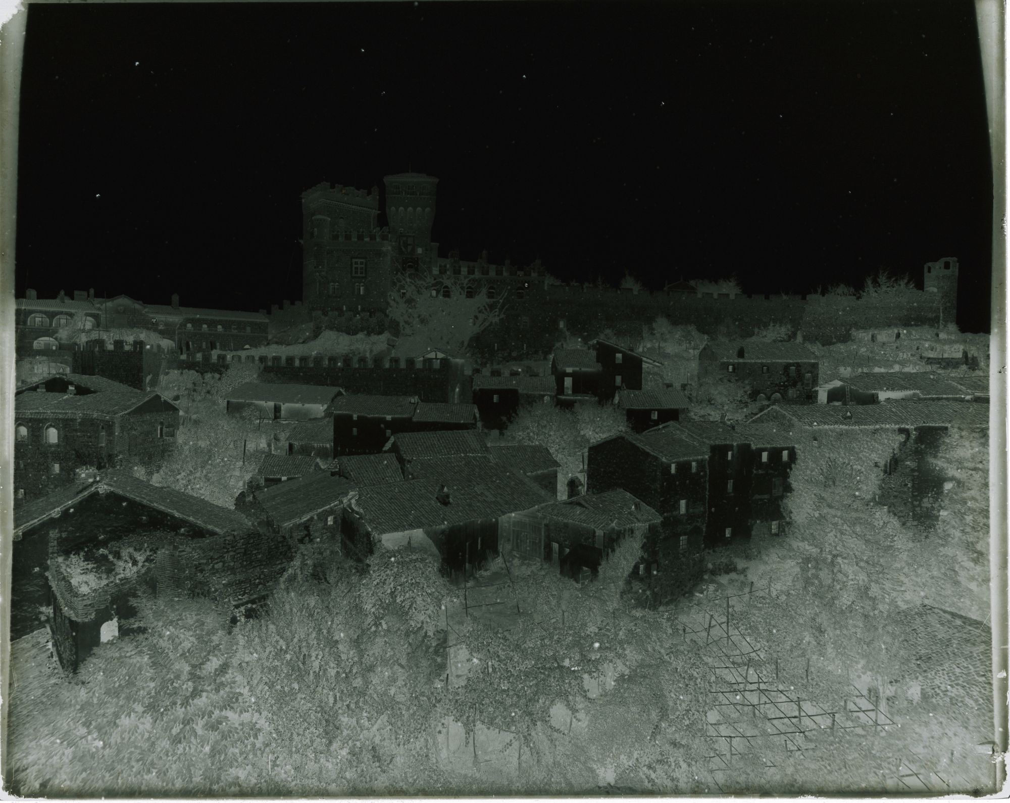 Pavone - Castello d'Andrade - durante il rifacimento TO - Pavone Canavese - Castello d'Andrade: vista generale da nord-ovest, con le case del paese in primo piano