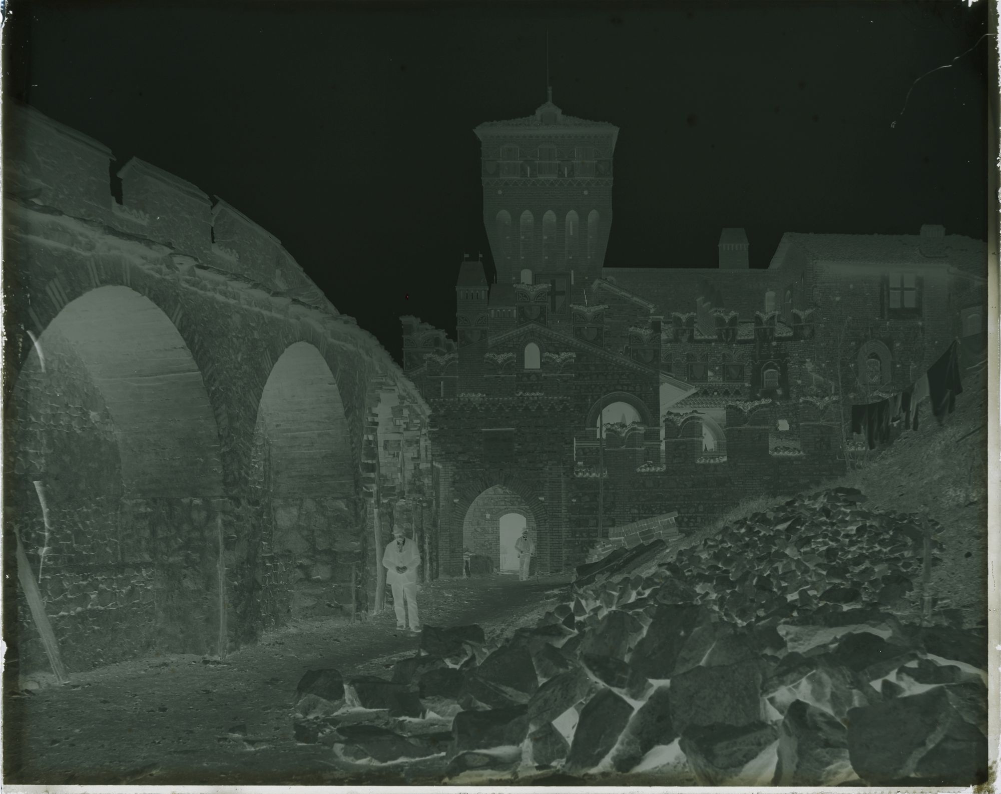 Pavone - Castello d'Andrade - durante il rifacimento TO - Pavone Canavese - Castello d'Andrade - ala di ponente e torre din ingresso: vista da sud dalla corte rustica