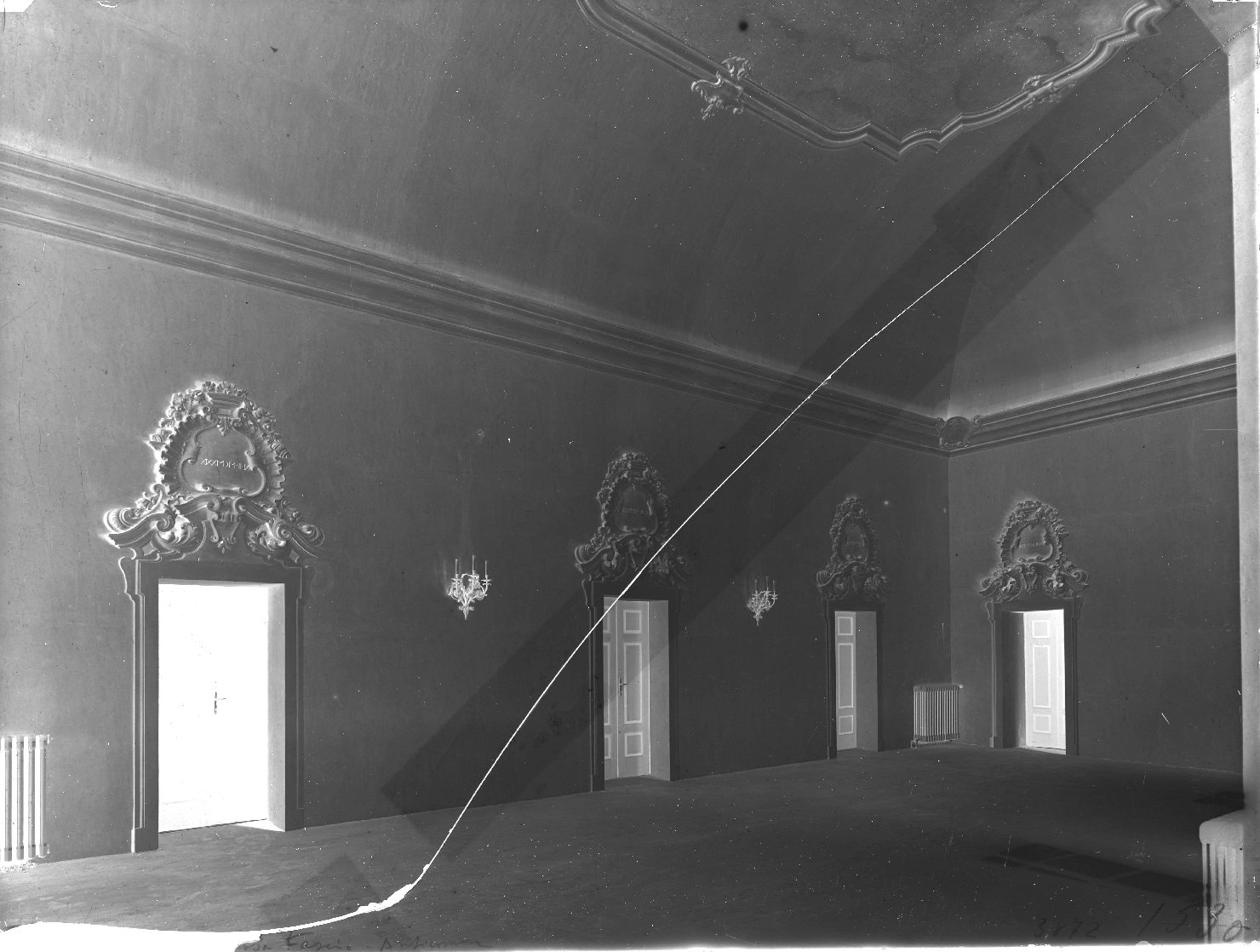 - NOTIZIE STORICO CRITICHE La fotografia fa parte di un piccolo reportage relativo alla "Casa del Fascio", palazzo mantovano del Settecento sito in via Fratelli Bandiera 32, originariamente residenza dei marchesi Ippoliti, poi di proprietà Teni e quindi nel 1932 alienato alla Federazione Provinciale Fascista. Le fotografie oggetto di questa raccolta possono essere ricondotte al passaggio di proprietà dell'edificio, da poco sottoposto a dichiarazione di vincolo, e al risultato dei lavori di adattamento del palazzo a sede del Partito. Nel 1932 Clinio Cottafavi scriveva al soprintendente di Verona di essere stato incaricato "come ispettore onorario ai Monumenti di Mantova, di vigilare appena si inizieranno i lavori di adattamento del fabbricato ... sarei ben lieto di seguire i lavori di demolizione per vedere se venissero in luce importanti cose sotto le attuali soprastrutture per impedirne la distruzione e segnalarle poi a codesta Soprintendenza ..." (SBAP Brescia, Archivio Monumenti, b. 61: Mantova. Edificio via Fratelli Bandiera 32, lettera 18 febbraio 1932). Sempre Cottafavi rassicurava poco dopo che "non solo non si frazionano grandi in piccoli ambienti, ma si abbattono sparsaie per restituire tre saloni alla primitiva grandiosità ... non si porta alcuna modifica alla facciata e non si tocca lo scalone" (IBIDEM, lettera 20 febbraio 1932). I lavori avrebbero portato in luce, sotto il canniccio di un salone, un soffitto ligneo e un fregio ottocentesco ben visibili in una delle fotografie del reportage (NCTN 000) e avrebbero compreso anche un adattamento della facciata (SBAP Brescia, Archivio Monumenti, b. 61, lettera 7 luglio 1932). Sulla base della documentazione, che peraltro si interrompe fino al 1948 -quando il Palazzo era ormai entrato a far parte del Demanio statale- e del riscontro con le immagini, che restituiscono l'aspetto del Palazzo in perfetto stato di ordine e decoro, a restauri ultimati, si propone una datazione agli anni 1932-1933