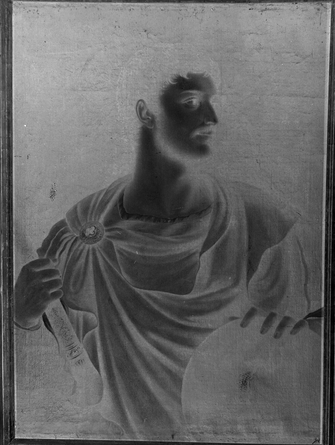 - NOTIZIE STORICO CRITICHE Il Gabinetto dei Cesari prende il nome dai dodici ritratti di imperatori, di cui undici realizzati dal Tiziano tra il 1537 e il 1538, su commissione del duca Federico mentre il "Domiziano" venne aggiunto nel 1562 dal cremonese Bernardino Campi. Giulio Romano è l'ideatore delle cornici classicheggianti che circondavano i dipinti. La serie fu venduta nel 1627, passando dall'Inghilterra alla Spagna e in seguito distrutta nell'incendio dellAlcazar del 1734. Attualmente si trovano nella stanza copie tradocinquecentesche. Queste copie divennero proprietà statale nel 1924 con acquisto dall'antiquario veneziano Giovanni Candrian, e subito destinate a sostituire la serie originale nel Camerino dei Cesari in Corte Nuova. Si ipotizza la realizzazione dello scatto in prossimità dell'arrivo dei dipinti a Mantova, come documentazione dell'evento. Le condizioni del dipinto infatti non mostrano necessità di restauro (avvenuti peraltro in epoca successiva: 1954, 1969 e 1997). Vedi Stefano L'Occaso - Museo di Palazzo Ducale di Mantova - Mantova, 2011, pp.231-233