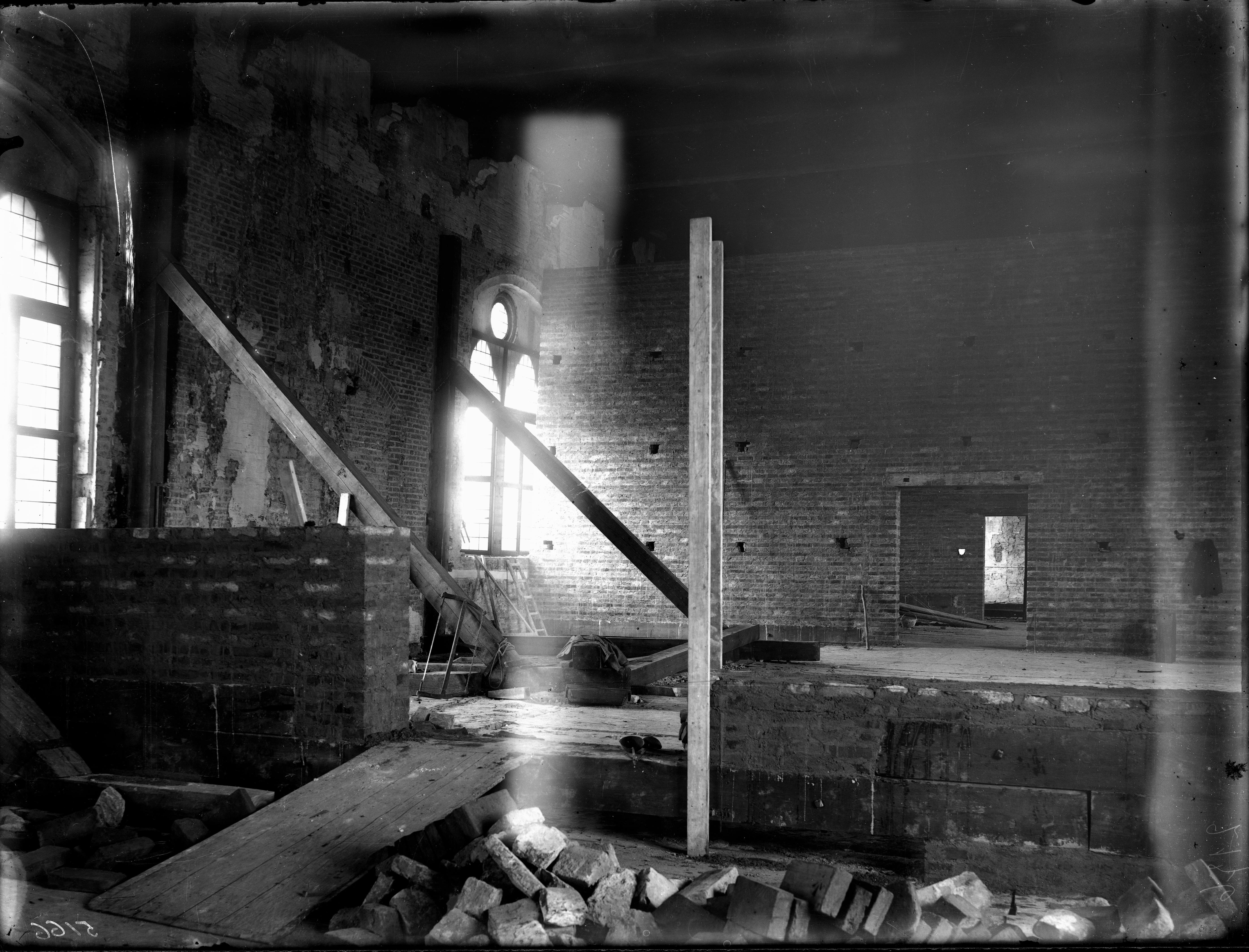- NOTIZIE STORICO CRITICHE La lastra documenta i lavori di sistemazione del Salone dell'Armeria, al secondo piano del Palazzo del Capitano di Mantova, intrapresi da Clinio Cottafavi a partire dal 1923: i restauri del sottostante appartamento di Guastalla infatti coinvolgono i soffitti e di conseguenza il piano del pavimento dell'Armeria, dove vengono rimossi pilastri e muri di sostegno realizzati da Patricolo nel tentativo di raddrizzare i muri perimetrali, non più a piombo: si veda la dettagliata relazione di Clinio Cottafavi, Mantova: Palazzo Ducale, Palazzo del Capitano, in "Bollettino d'arte", febbraio 1932, pp. 377-379. Per una descrizione dell'Armeria, per lo più ignorata nelle guide poichè al di fuori del consueto percorso di visita, cfr. Achille Patricolo, Guida del Palazzo Ducale di Mantova, Mantova, Eredi Segna, 1908, p. 6