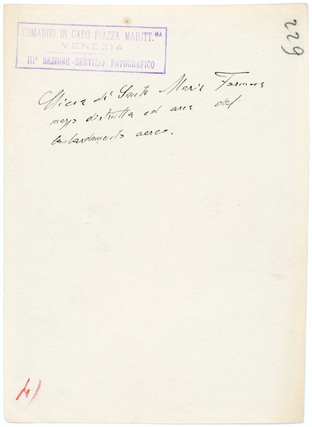 - ISCRIZIONI sul supporto primario: verso: in alto al centro - Chiesa di Santa Maria Formosa/ mezza distrutta ad opera del/ bombardamento aereo -