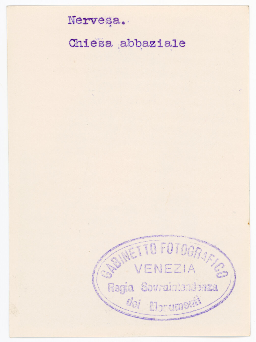 - ISCRIZIONI sul supporto primario: verso: in alto - Nervesa./ Chiesa abbaziale -
