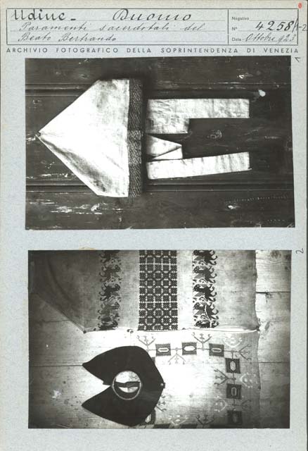 - ISCRIZIONI sul supporto secondario: in alto - Udine - Duomo/ Paramenti sacerdotali del/ Beato Bertrando/ ARCHIVIO FOTOGRAFICO DELLA SOPRINTENDENZA DI VENEZIA/ Negativo/ N° 4258/ Data Ottobre 1923 - Archivio Fotografico Soprintendenza ai Monumenti di Venezia - a penna/ a stampa - italiano