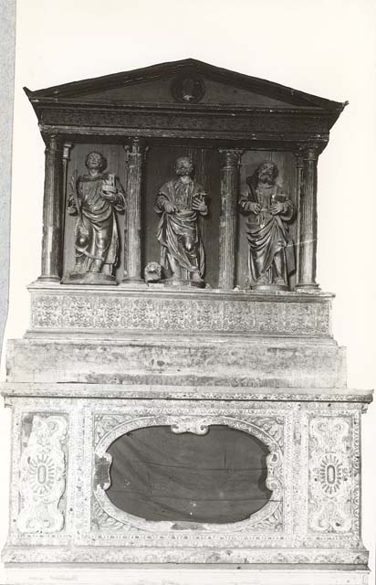 Documentazione storico artistica: ancona lignea, sculture, tre Santi