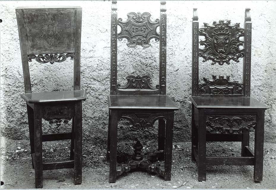 Documentazione storico artistica: sedia in legno, tre; manifattura carnica