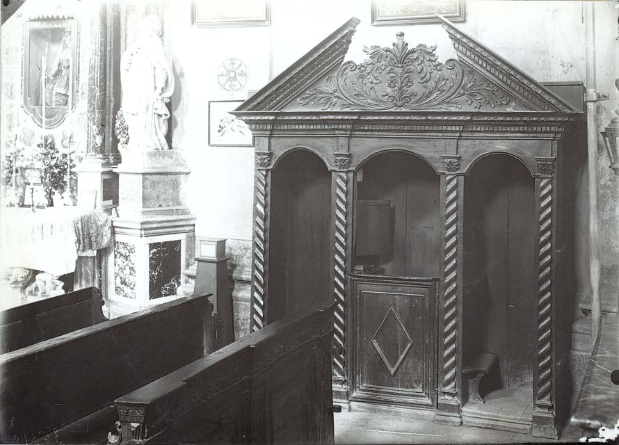 Documentazione storico artistica: sec. XVIII, confessionale legno; bottega carnica
