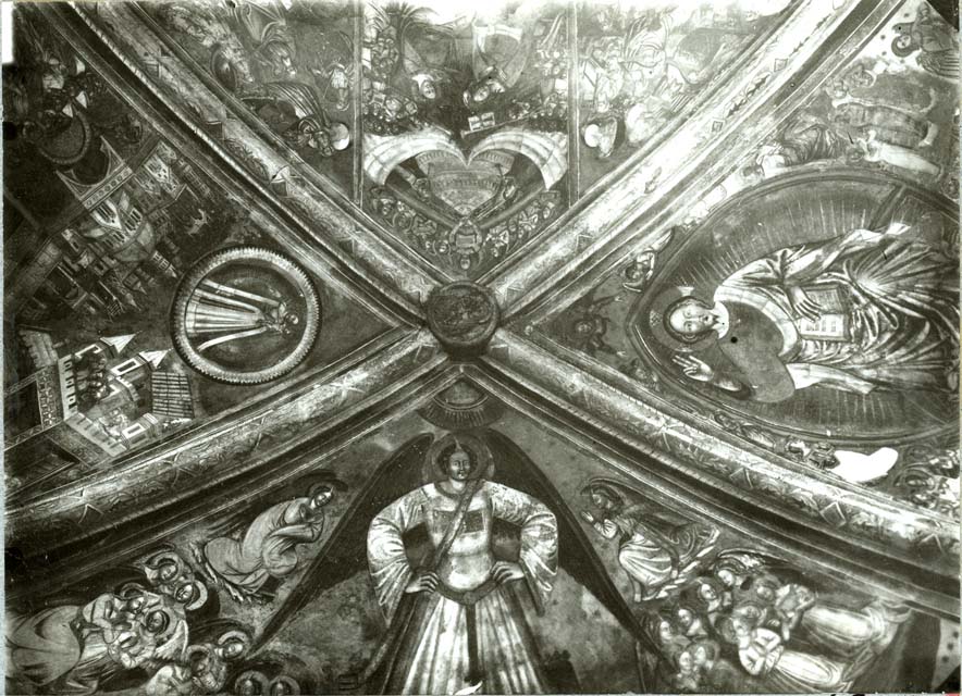 - ISCRIZIONI sul supporto secondario: in alto - Venzone - (Udine)/ Duomo/ Partic. affresco nella volta della cappella che mette in sagrestia/ ARCHIVIO FOTOGRAFICO DELLA SOPRINTENDENZA DI VENEZIA/ Interno - 1805/ Negativo/ N° 1803/ Data Giug. 1909 - Archivio Fotografico Soprintendenza ai Monumenti di Venezia - a penna/ a stampa - italiano
