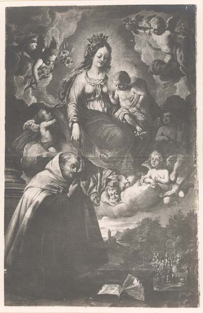 Documentazione storico artistica: sec. XVII, dipinto, Madonna col Bambino in gloria e Santo