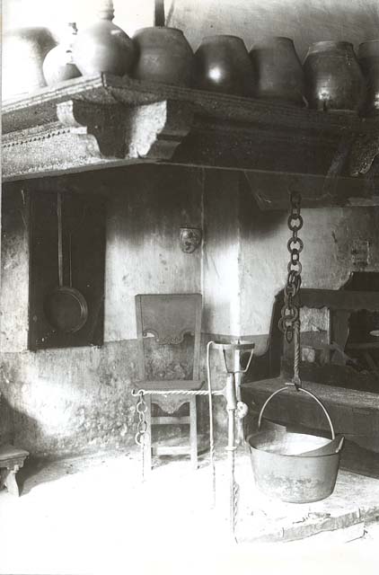 Interno: alare; paiolo; panche; sedia; padella; pignates