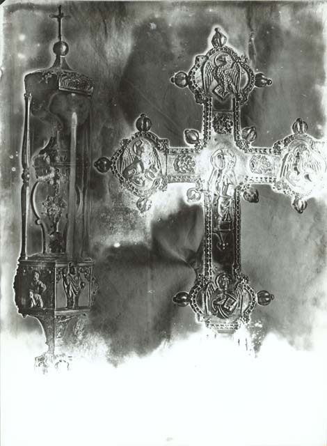 - ISCRIZIONI sul supporto secondario: in alto - C. Zuglio - (Udine) Chiesa/ S. Pietro/ Reliquiario di rame dorato Sec. XV croce sec. XIV/ ARCHIVIO FOTOGRAFICO DELLA SOPRINTENDENZA DI VENEZIA/ Negativo/ N° 1739/ Data 1908 - Archivio Fotografico Soprintendenza ai Monumenti di Venezia - a penna/ a stampa - italiano