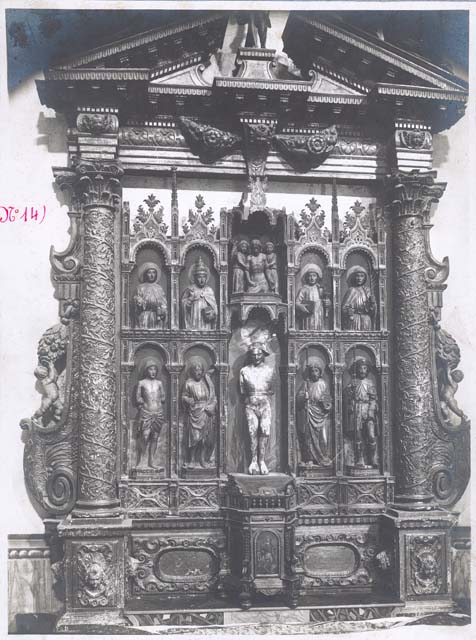 - ISCRIZIONI sul supporto secondario: in alto - Forni di Sopra - Chiesa par-/ rocchiale - Altare in legno del sec. XV-XVI/ (Udine)/ ARCHIVIO FOTOGRAFICO DELLA SOPRINTENDENZA DI VENEZIA/ Negativo/ N° 1699/ Data 1908 - Archivio Fotografico Soprintendenza ai Monumenti di Venezia - a penna/ a stampa - italiano