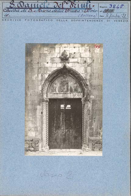 - ISCRIZIONI sul supporto secondario: in alto - C. S. Daniele del Friuli -/ Chiesa di S. Maria della Fratta - Porta-/ le (Belluno)/ ARCHIVIO FOTOGRAFICO DELLA SOPRINTENDENZA DI VENEZIA/Negativo/ N° 3845/ Data 8 7mbre '21 - Archivio Fotografico Soprintendenza ai Monumenti di Venezia - a penna/ a stampa - italiano