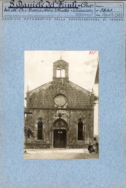 - ISCRIZIONI sul supporto secondario: in alto - S. Daniele del Friuli -Chie-/ sa S. Maria della Fratta - Facciata/ (Belluno)/ ARCHIVIO FOTOGRAFICO DELLA SOPRINTENDENZA DI VENEZIA/Negativo/ N° 3844/ Data Agosto 1921 - Archivio Fotografico Soprintendenza ai Monumenti di Venezia - a penna/ a stampa - italiano