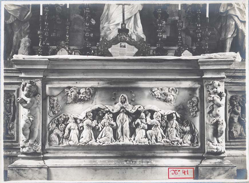 Documentazione storico artistica: sec. XVIII, altare maggiore, paliotto, Madonna della Misericordia; Baratta Pietro