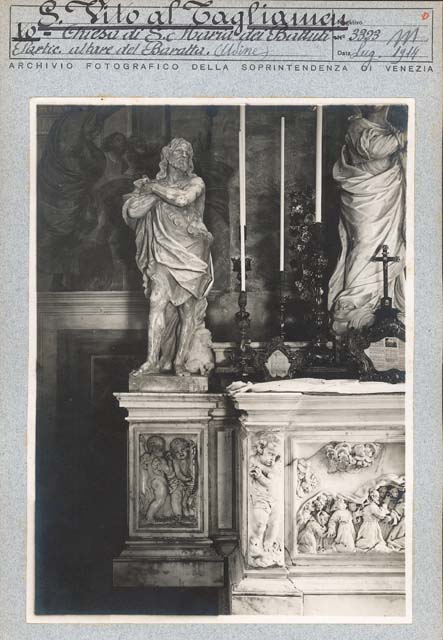 - ISCRIZIONI sul supporto secondario: in alto - S. Vito al Tagliamen-/ to - Chiesa S. Maria dei Battuti/ Partic. altare del Baratta. (Udine)/ ARCHIVIO FOTOGRAFICO DELLA SOPRINTENDENZA DI VENEZIA/ Negativo/ N° 3323/ Data Lug. 1914 - Archivio Fotografico Soprintendenza ai Monumenti di Venezia - a penna/ a stampa - italiano