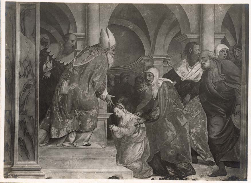 Documentazione storico artistica: sec. XVI, affresco, Storie della Vergine, Presentazione di Maria Vergine al Tempio; Amalteo Pomponio; dopo il restauro