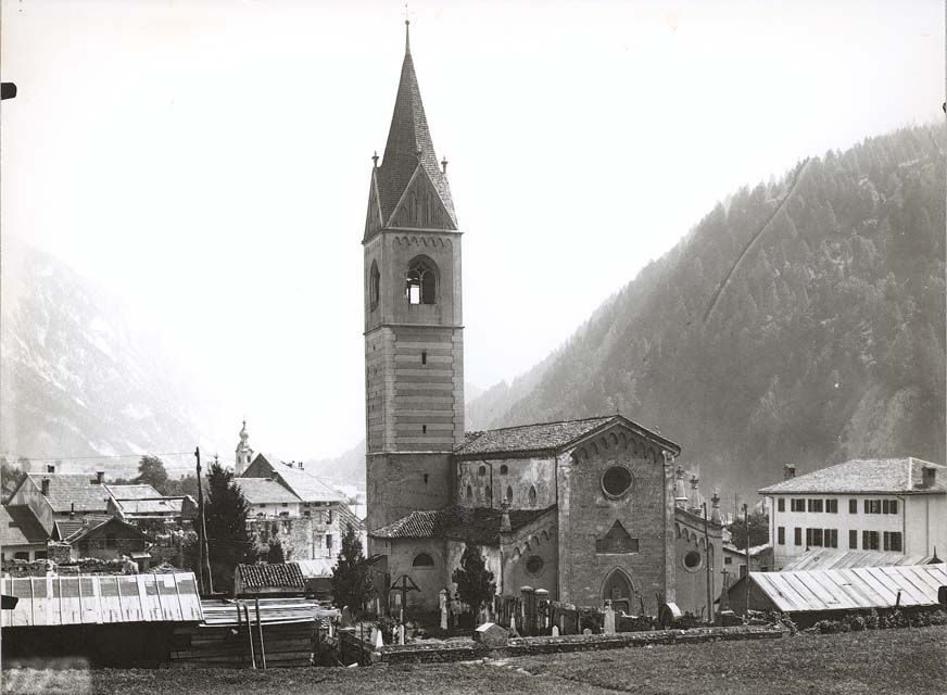 - ISCRIZIONI sul supporto secondario: in alto - C. Pontebba - (Udine)/ Chiesa/ Esterni prima del ristauro/ ARCHIVIO FOTOGRAFICO DELLA SOPRINTENDENZA DI VENEZIA/ Negativo/ N° 3852/ Data 17.8.1921 - Archivio Fotografico Soprintendenza ai Monumenti di Venezia - a penna/ a stampa - italiano
