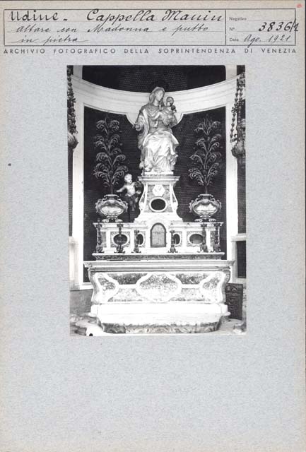 - ISCRIZIONI sul supporto secondario: in alto - Udine - Cappella Manin/ Altare con Madonna e putto/ in pietra/ ARCHIVIO FOTOGRAFICO DELLA SOPRINTENDENZA DI VENEZIA/ Negativo/ N° 3836/ Data Ago. 1921 - Archivio Fotografico Soprintendenza ai Monumenti di Venezia - a penna/ a stampa - italiano