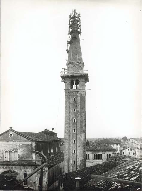 - ISCRIZIONI sul supporto secondario: in alto - C. Sacile - (Udine)/ Duomo/ Il Campanile dopo il restauro/ ARCHIVIO FOTOGRAFICO DELLA SOPRINTENDENZA DI VENEZIA/ Messa in opera dell'angelo/ Negativo/ N° 3641/ Data 1.6.1920 - Archivio Fotografico Soprintendenza ai Monumenti di Venezia - a pennarello - italiano