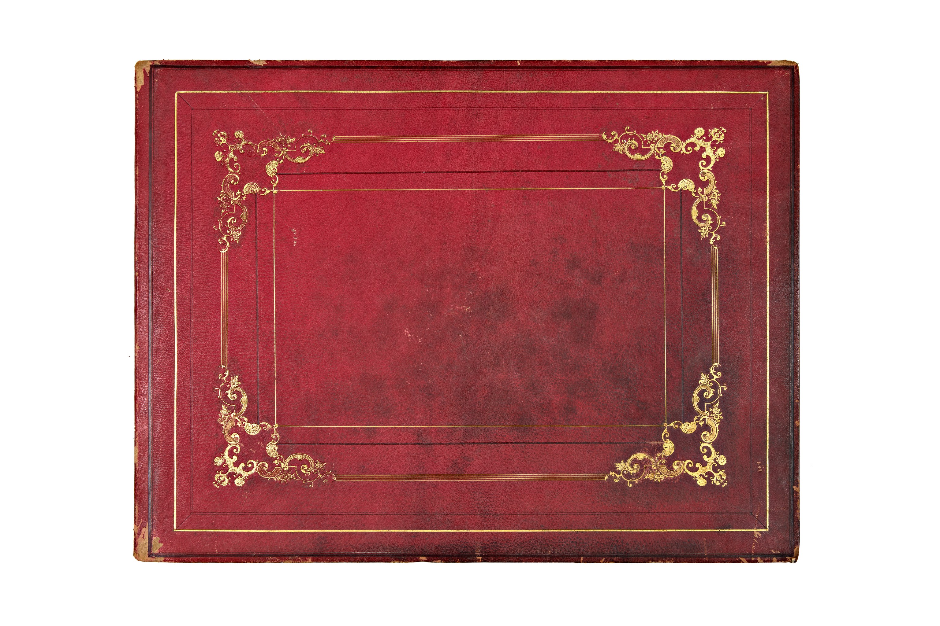 Album in pelle rossa, con decorazioni e rifiniture stampate a caldo e dorate. Al centro del frontespizio è impresso lo stemma imperiale asburgico. L'interno dell'album è rivestito in raso. Le pagine sono rilegate