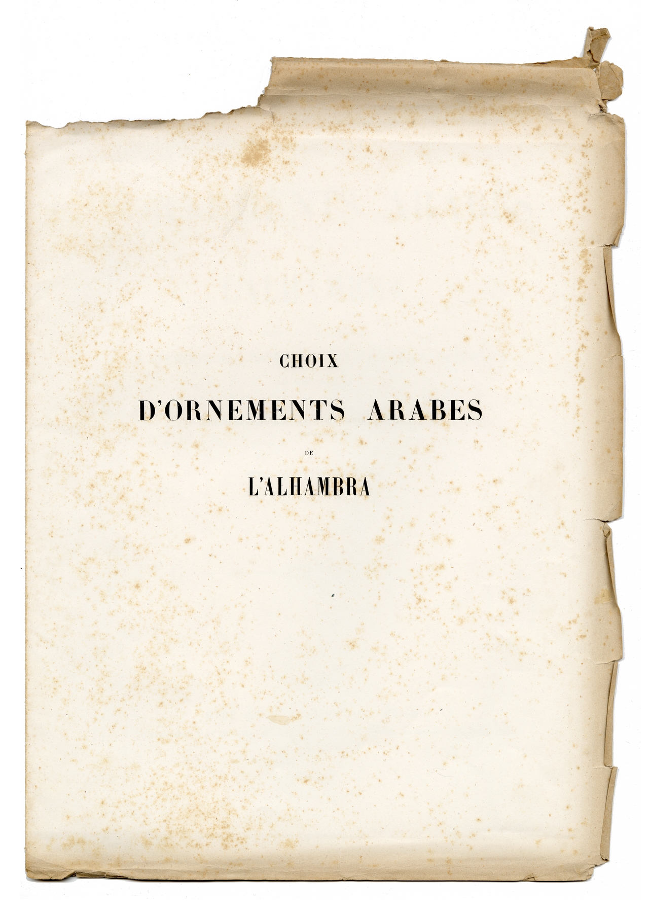 • NOTIZIE STORICO CRITICHE Album fotografico realizzato dai fratelli Bisson contenente diciannove fotografie in dodici tavole raffiguranti ornamenti architettonici delle pareti del palazzo dell'Alhambra a Granada. Si tratta del primo viaggio dei fratelli fotografi all'estero, avvenuto nell'anno del matrimonio tra Napoleone III ed Eugenia de Montijo, nata a Granada