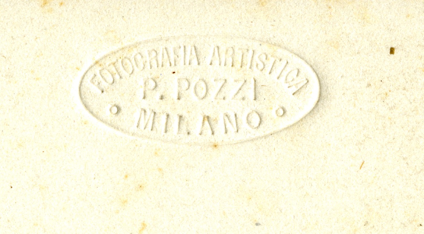 Positivo incollato su cartoncino di supporto con timbro a secco dell'autore