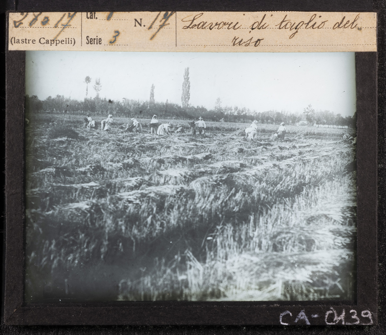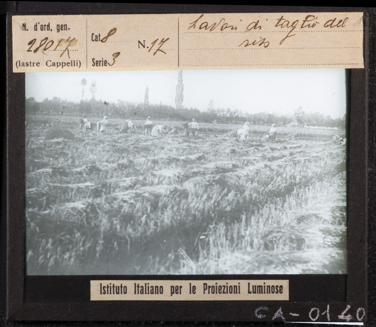 - NOTIZIE STORICO CRITICHE I materiali presenti nel fondo lasciano supporre una riproduzione da positivi o da libri, come spesso si deduce da mascherature che vanno a ricoprire titolazioni originali o dalla presenza di puntine da disegno usate per fissare ad un supporto la fotografia da duplicare. Le diapositive fotografiche su vetro per lanterna magica sono realizzate tra il 1921 e il 1932 a Milano, con riprese eseguite dall’Istituto Italiano per le Proiezioni Luminose (1921-1935 ca.) e lastre prodotte dalla ditta Cappelli (1885-1932), industria di grande rilievo che si impone sul mercato italiano, soprattutto dopo l’avvento della gelatina bromuro d’argento che semplifica il processo di sviluppo e stampa dei negativi e rende possibile una svolta verso l’industrializzazione in campo fotografico. Le speciali proiezioni delle immagini, effettuate con proiettori al carburo (acetilene), illustrano le lezioni di agricoltura e zootecnica che si tengono in modo itinerante in varie località dell’area bolognese. Tali lezioni sono promosse a livello nazionale dalle Cattedre Ambulanti di Agricoltura, una Istituzione nata nella seconda metà dell’Ottocento, quando le università del Paese riescono a formare i primi agronomi e quando si consolidano gli istituti agrari: sono gli uomini formatisi nelle scuole agrarie a guidare le prime cattedre, la loro determinazione porta allo sviluppo dell’agricoltura italiana, il loro scopo iniziale è quello di tenere delle conferenze di “propaganda agricola”, che consentano di diffondere nuove tecniche e raggiungere gli agricoltori anche nelle campagne più sperdute. L’insegnamento delle buone pratiche agricole serve a combattere l’ignoranza e l’isolamento della società rurale, i risultati sono subito tangibili: incremento della produzione agricola e del patrimonio zootecnico, introduzione e diffusione di nuove piante e varietà. La Cattedra Ambulante di Agricoltura di Bologna (in seguito Ufficio provinciale per l’Agricoltura) è attiva dal 1893 al 1935, ne sono presidenti Domizio Cavazza e poi Luigi Zerbini, nella sua genesi ha un ruolo primario il Comizio agrario di Bologna (inaugurato nel 1867, nel 1915 si separa dalla Cattedra) presieduto da Luigi Pizzardi e poi da Enrico Pini. Organi ufficiali del Comizio agrario di Bologna e della Cattedra Ambulante di Agricoltura di Bologna sono i periodici “L’Italia agricola” (1869-1991), “L’agricoltura bolognese” (1907-1929) e gli “Annali della cattedra provinciale di agricoltura e dell’ufficio tecnico del Comizio agrario di Bologna” (1893-1912). Con la legge n. 1220 del 13 giugno 1935 la Cattedra Ambulante di Agricoltura di Bologna viene soppressa e sostituita dall’Ispettorato provinciale di Agricoltura